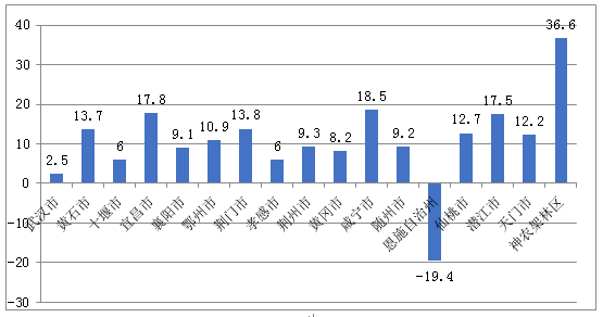图1 各市州全年主营业务收入增速(%)
