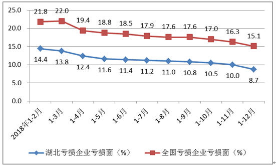 图5 全国和湖北各月累计亏损企业亏损面