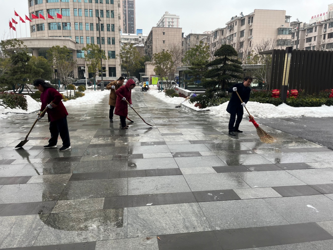 近日,武汉迎来新一轮冻雨天气,给群众生产生活等带来不利影响。2月22日,厅机关党员干部以“雪”为令,以动制“冻”,发挥带头示范作用,对办公楼前三包范围内人行步道、辅路等开展扫雪铲冰行动,维护雪后市容环境秩序,保障人民群众安全出行。