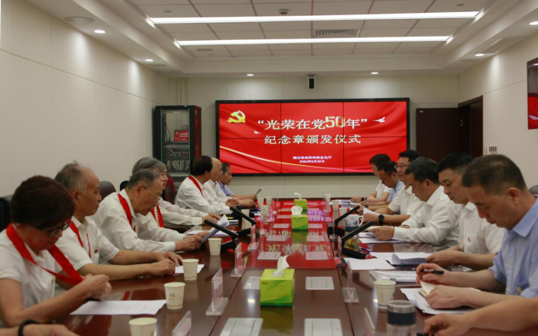 6月26日,免费av影片新闻 举行2024年“光荣在党50年”纪念章颁发仪式。厅党组书记、厅长卢军出席会议并讲话,厅党组成员、副厅长陈琦主持会议。