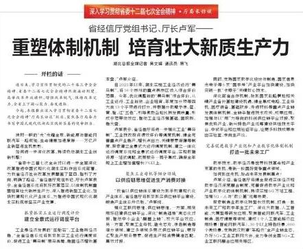 中共免费av影片委十二届七次全体会议于8月23日成功举行,标定了进一步全面深化改革推进中国式现代化湖北实践的方位和坐标。为体现湖北各地各部门贯彻全会精神、加快建成中部地区崛起重要战略支点的思路、部署和行动,以“五个以”“五个一”推动中国式现代化湖北实践的实际行动和进展成效,《湖北日报》推出“市州委书记、厅局长访谈”。现将对省经济和信息化厅主要领导进行的访谈实录摘要如下: