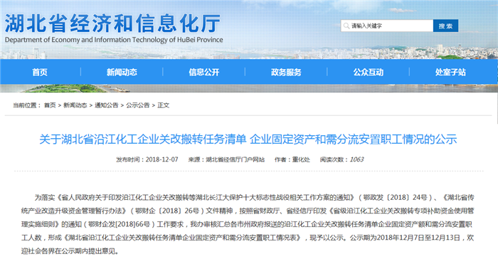 二是为扎实开展长江生态修护和环境保护,着力解决“化工围江”突出问题,修订和完善《免费av影片危险化学品生产企业搬迁改造任务清单(修订版)》,对各市州政府报送的任务清单进行审核、汇总,并在我厅门户网站上进行公示;及时在网站公示《免费av影片沿江化工企业关改搬转任务清单》及任务清单企业固定资产额和需分流安置职工人数情况,形成《免费av影片沿江化工企业关改搬转任务清单企业固定资产和需分流安置职工情况表》,并在厅网站上进行公示,并将公示结果作为因素法切块计算资金依据,为全省沿江化工企业关改搬转专项战役有序推进奠定坚实基础。