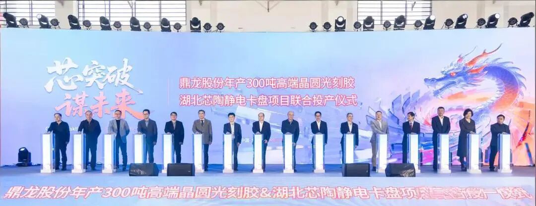 3月20日,鼎龙股份高端晶圆光刻胶项目及湖北芯陶静电卡盘项目联合投产活动在武汉经开区举行。