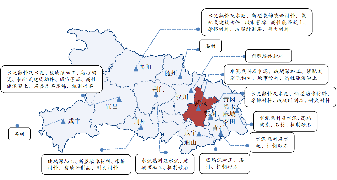 一是强化黄石、黄冈、鄂州、武汉、襄阳、荆门、宜昌等市水泥产业集群。